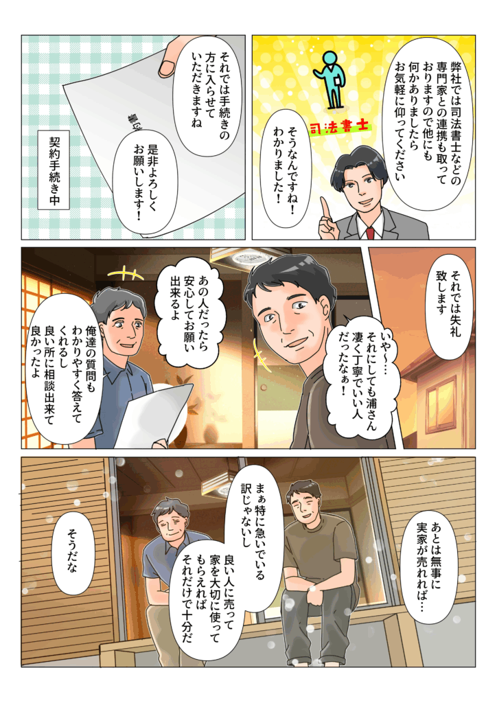 • 弟「 相続関係を手伝ってくれて売却も出来るそうだし、きちんとした対応をしてくれそうだ! 」